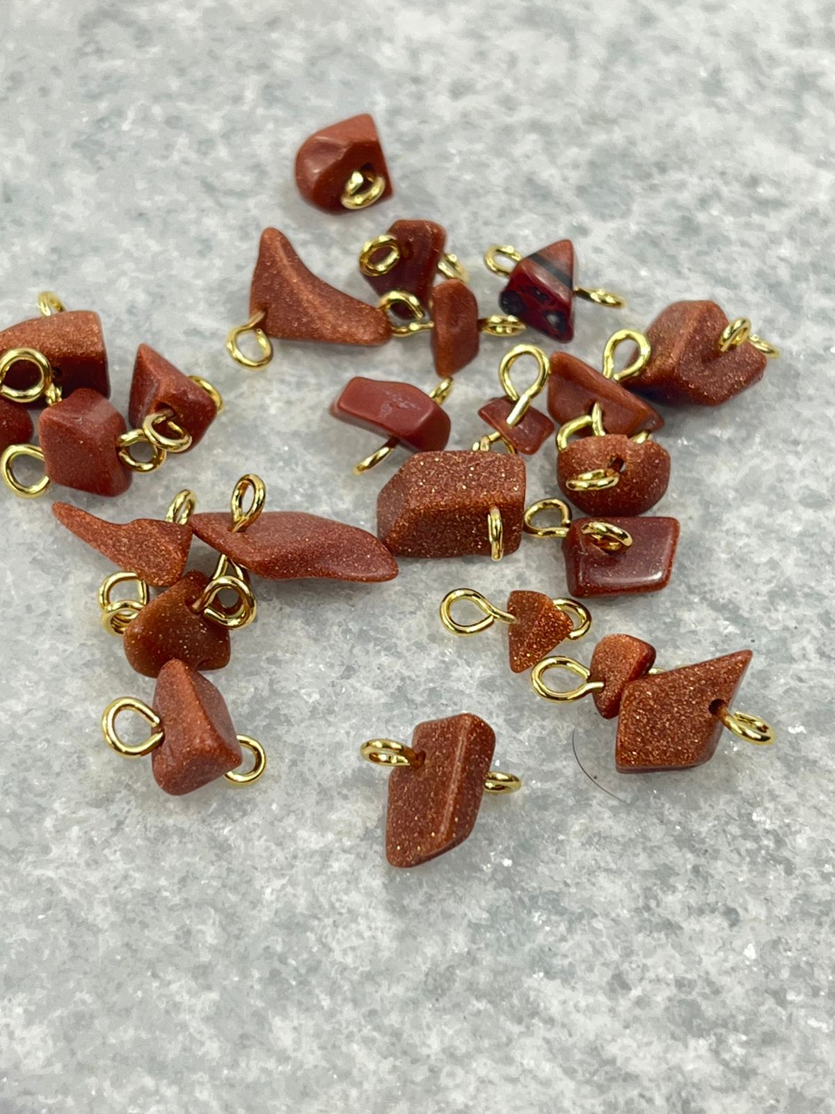 PEDRA NATURAL CASCALHO MARROM CASTROADO - CONTRAPINADA BANHO OURO - TAMANHO MÉDIO 7MM - 1 UNIDADE
