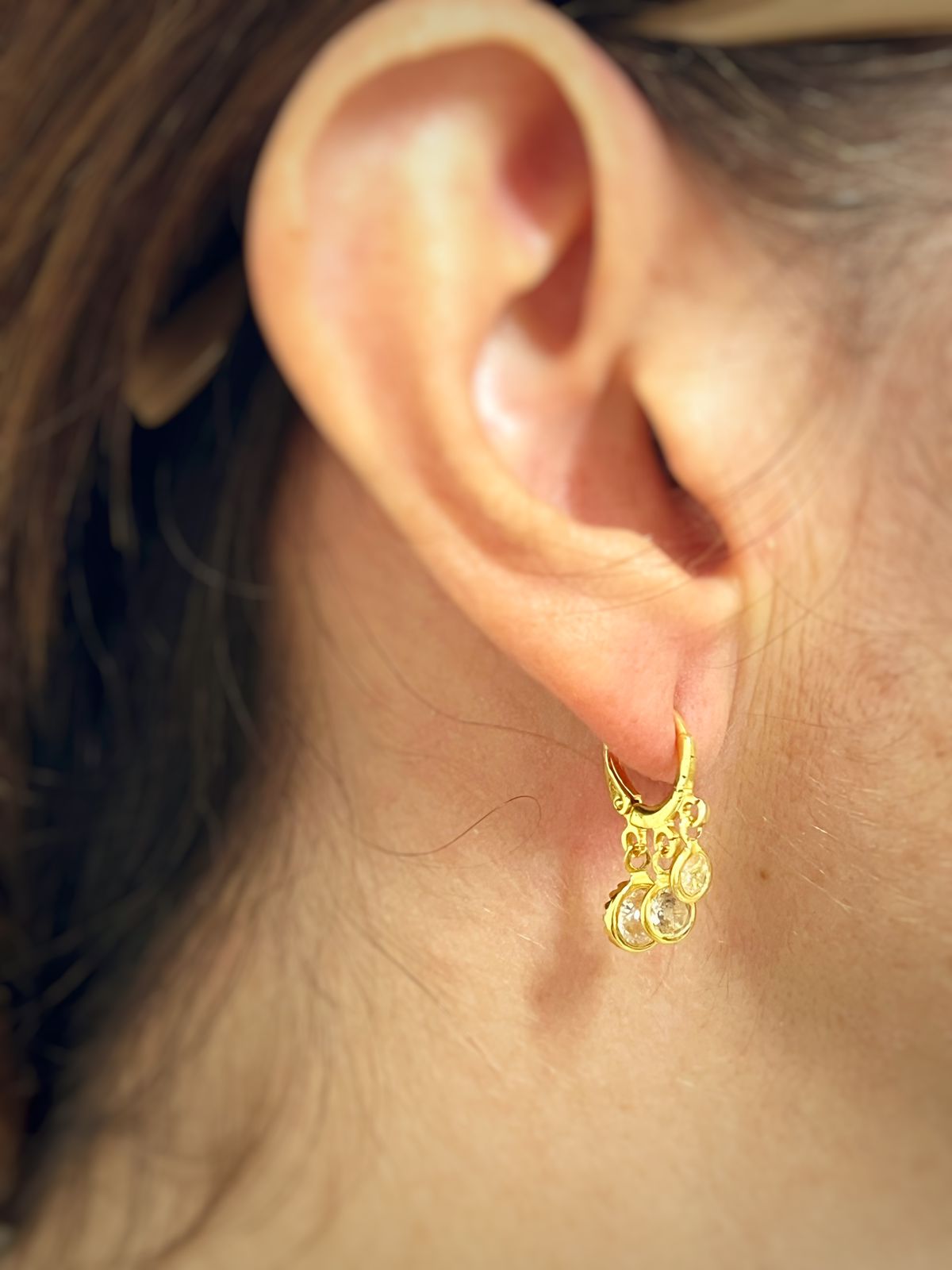 Brinco Tranqueta com 3 zirconias cristal - Banho ouro 2 milésimos com verniz - 1 par