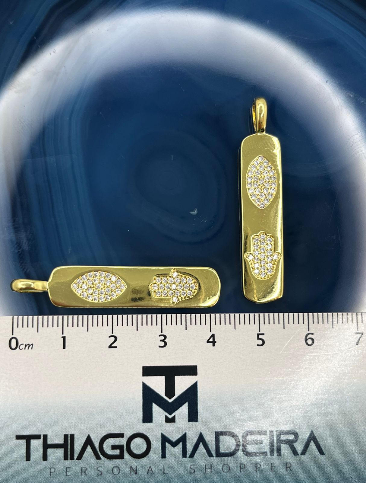 Pingente Placa Cravejada Semijoia - 01 Unid