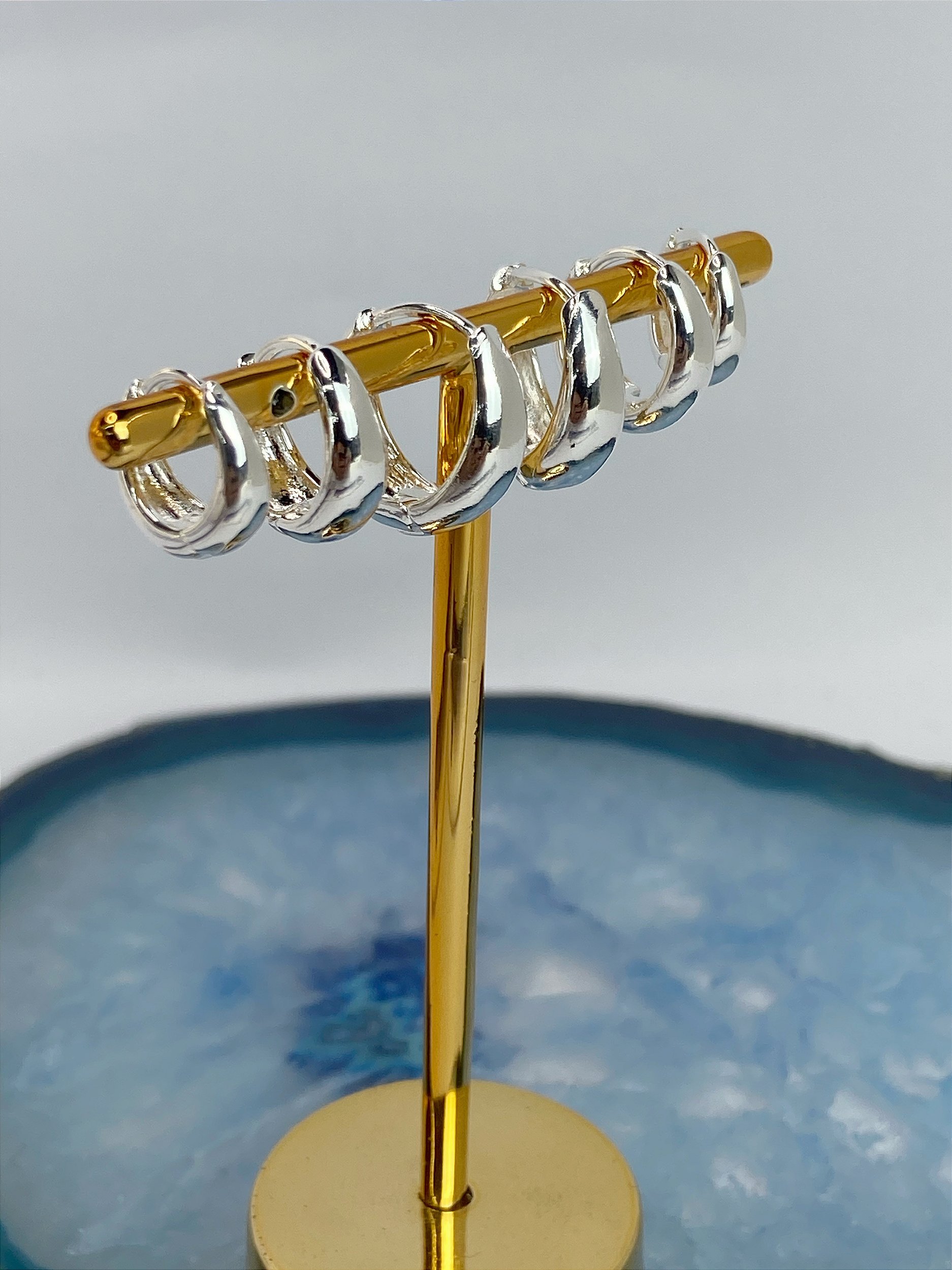 Trio Brinco Argola Click - Banho Prata 925 camada 50 Milésimos e Verniz - Semijoia - 3 Pares P M G