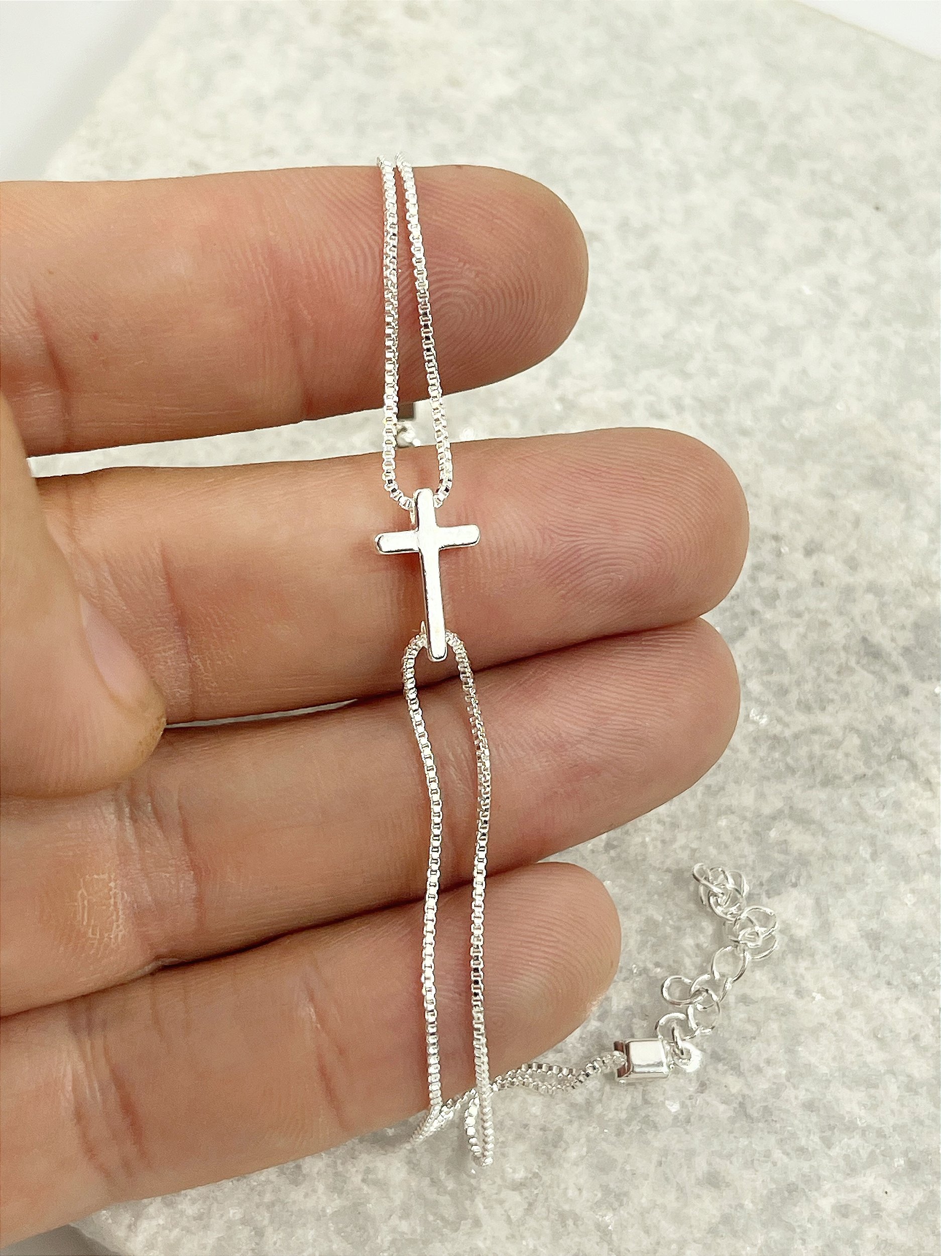 Pulseira veneziana com cruz - Banho Prata 925 Semijoia - 50 milésimos com verniz italiano - 1 unidade