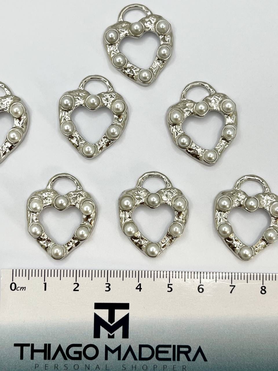Pingente Coracao Com Perola - 01 Unid - Níquel Branco