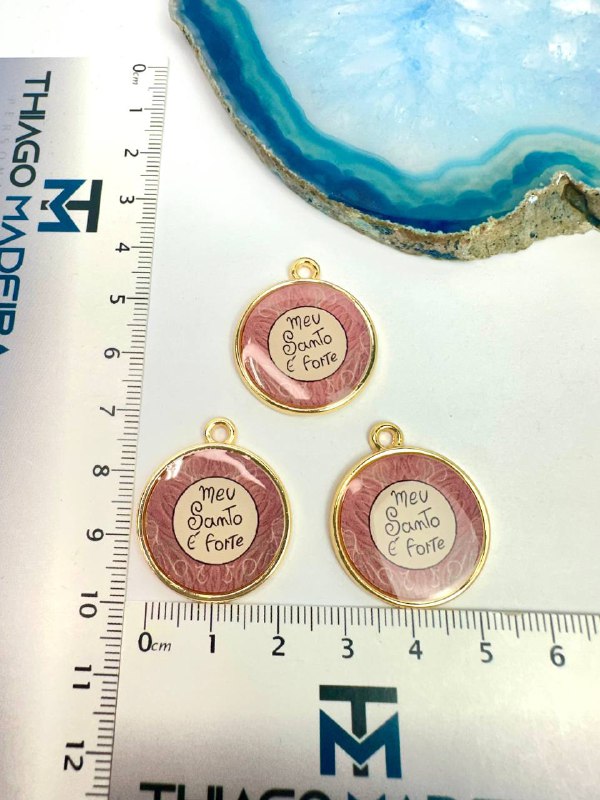 Pingente Escrito Meu Santo É Forte Resinado Colorido