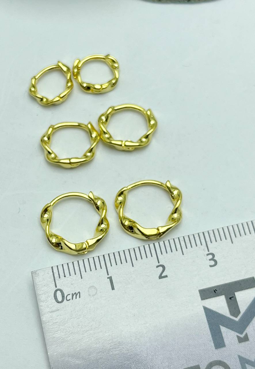 Trio Brinco Argola torcida Fina 3 pares Tipo click - Banho ouro 2 milésimos camada com verniz italiano