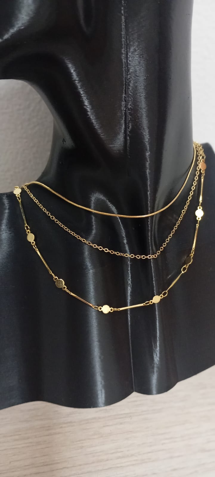 Kit Choker com 3 modelos Banho ouro 2 milésimos e verniz protetivo - 3 unidades de 40cm cada