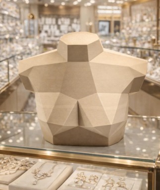 Este busto expositor geométrico foi desenvolvido para trazer um visual moderno, elegante e profissional, ideal para colares, correntes e peças de bijuteria fina.