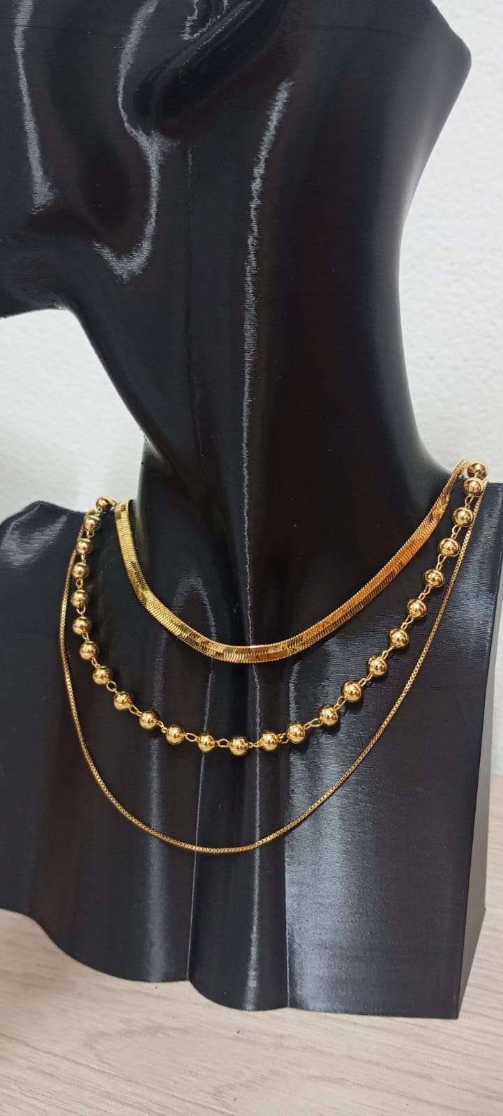 Kit Choker com 3 modelos Banho ouro 2 milésimos e verniz protetivo - 3 unidades de 40cm cada