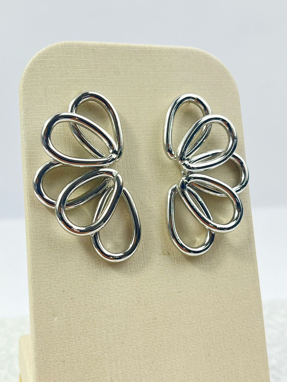 Brinco MEIA FLOR VAZADO orgânico banho niquel diamante - 1 par