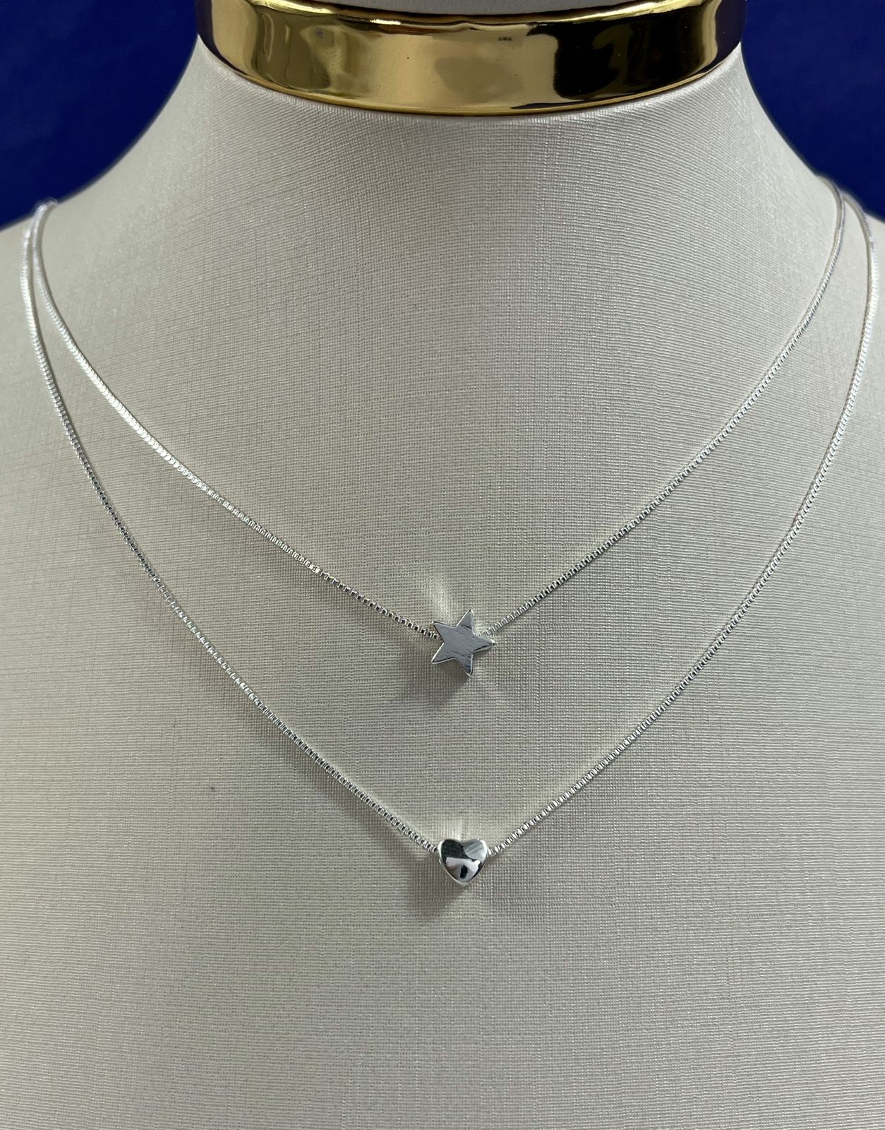 Colar Duplo Estrela Coracao Prata 925 Semijoia - Banho 50 milésimos - 1 unidade com 40cm
