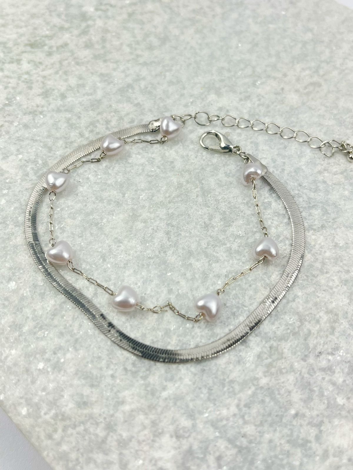 Pulseira coracao perola banho niquel diamante com verniz -1 unidade