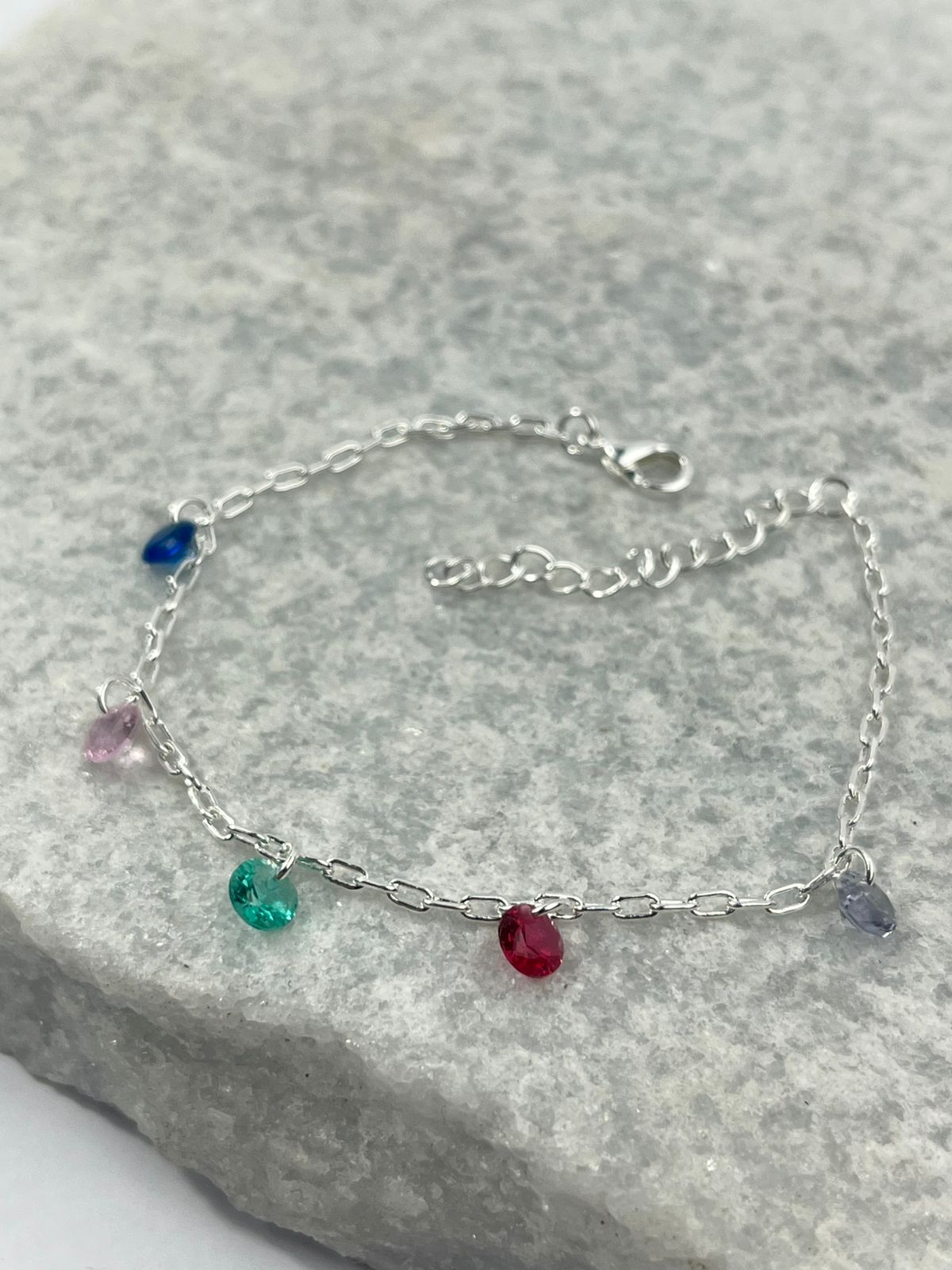 Pulseira cadeado com zirconias coloridas com extensora banho Prata 925 semijoia 50 milésimos com verniz italiano - medida 17cm
