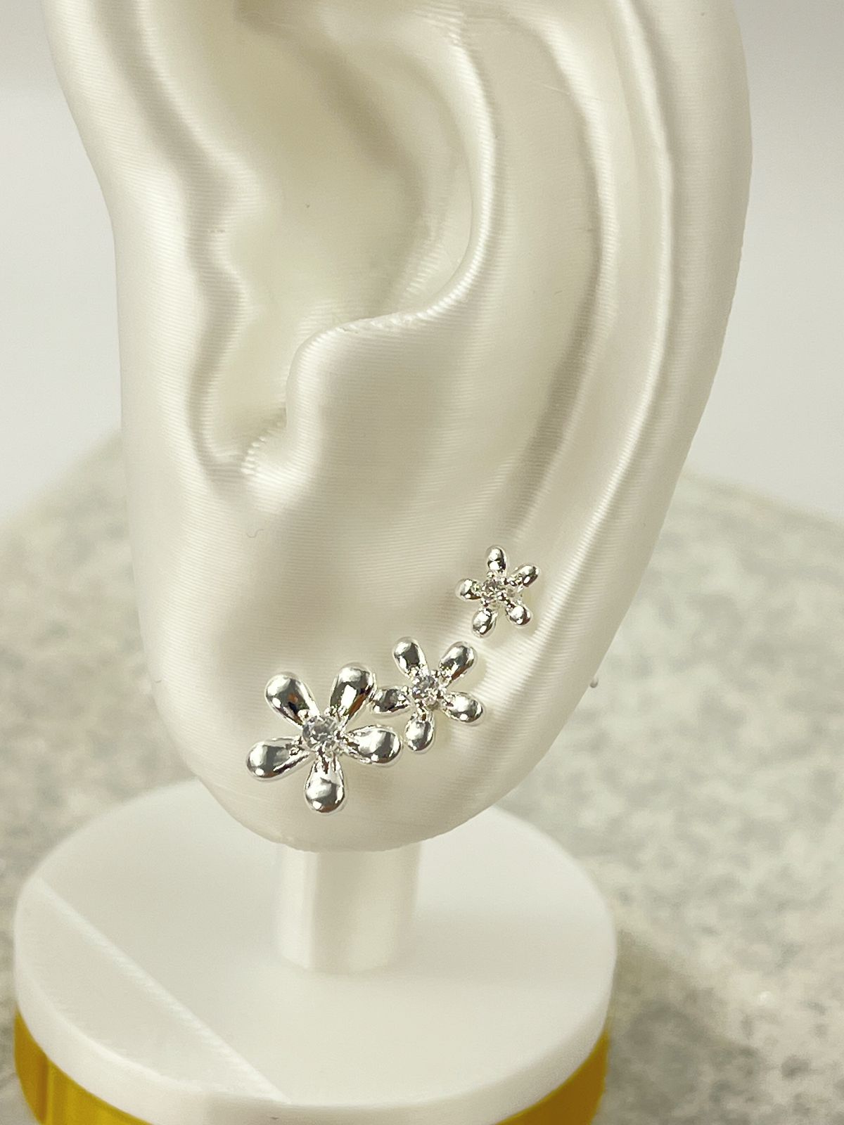 Trio Brinco Flor zirconia cristal Banho Prata 925 Semijoia - 50 milésimos com verniz italiano - 3 pares