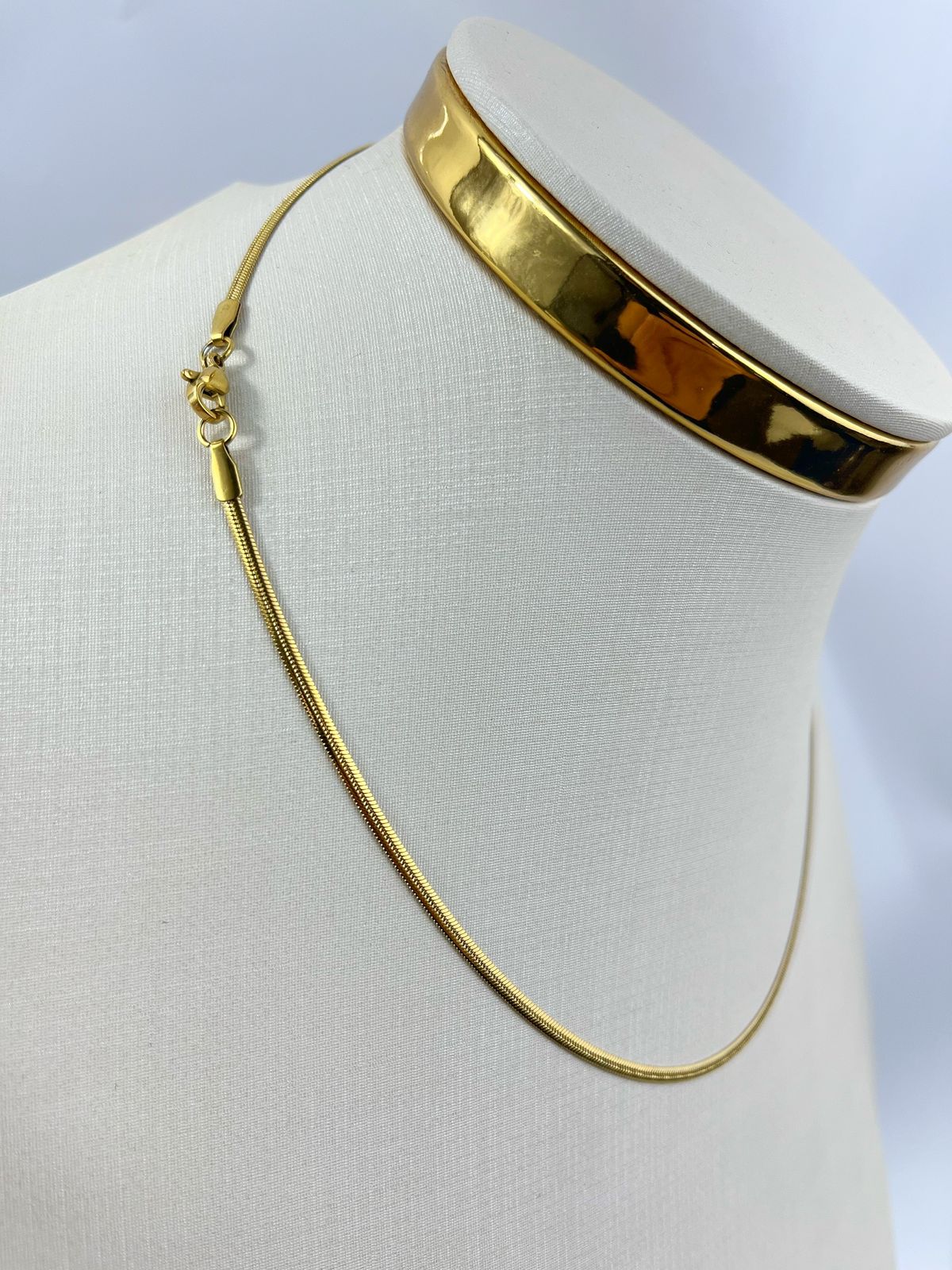 Colar Aço Inox corrente mola / fita Dourado antialergico medida 45cm - 1 unidade
