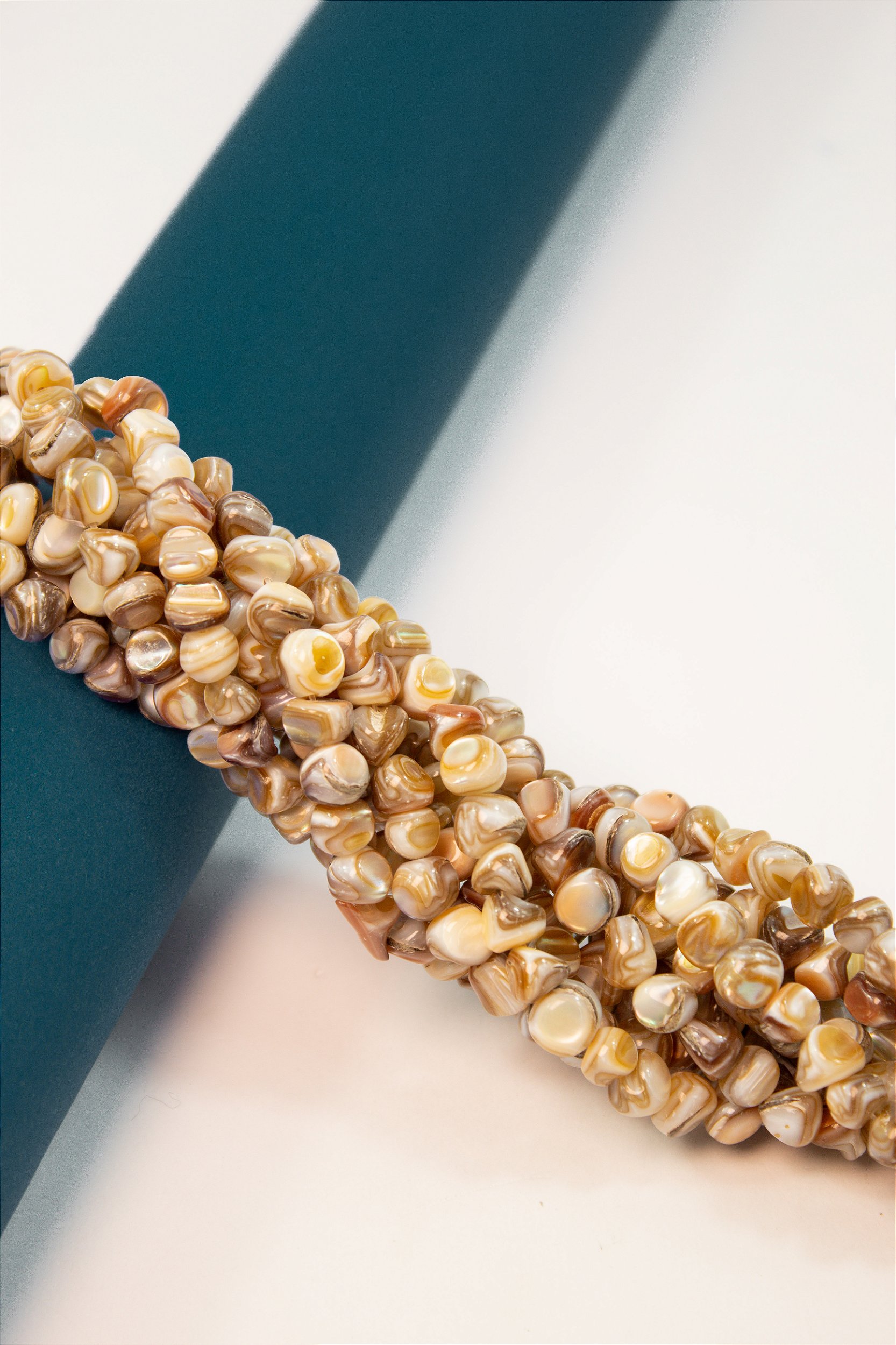 A madrepérola é um material precioso que se forma nas conchas de moluscos, como ostras e abalone, ao longo de muitos anos, sendo composta por camadas de nácar que criam um brilho iridescente único. Sua origem natural e orgânica faz da madrepérola um símbolo de pureza, harmonia e elegância, apreciado por diversas culturas ao longo da história, especialmente em joias e ornamentos.